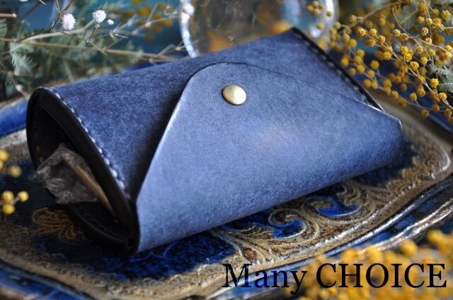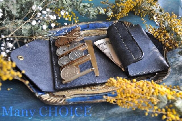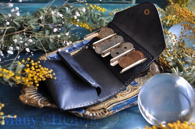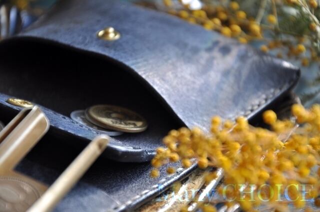イタリアンレザー・革新のプエブロ・コインキャッチャー財布(改)(ネイビー)