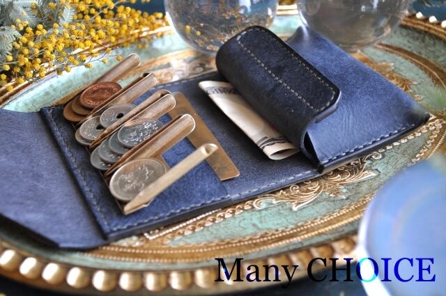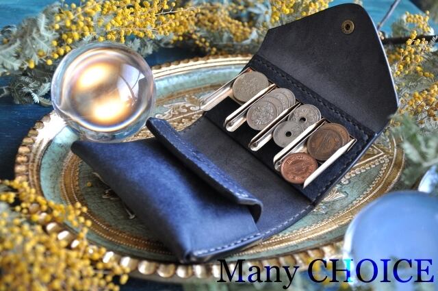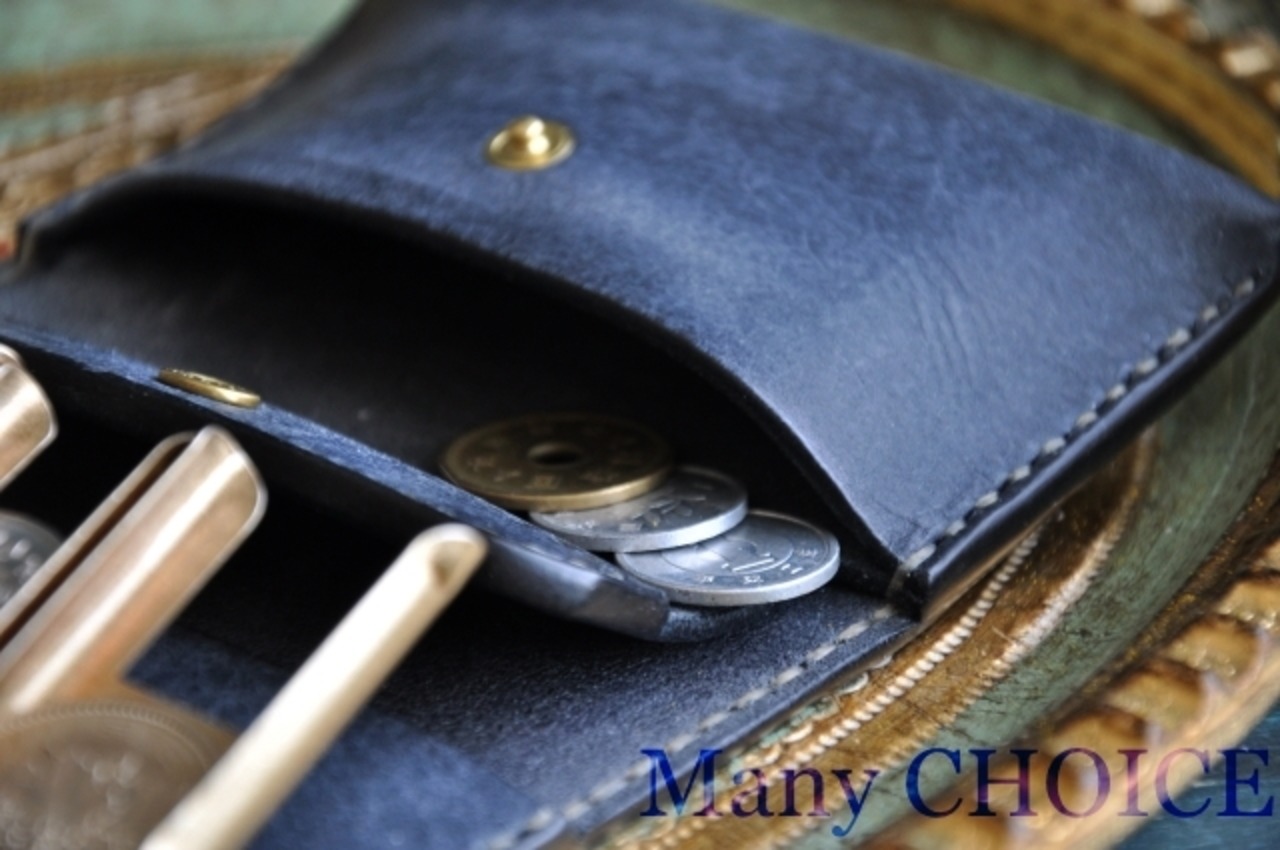イタリアンレザー・革新のプエブロ・コインキャッチャー財布(改)(ネイビー)