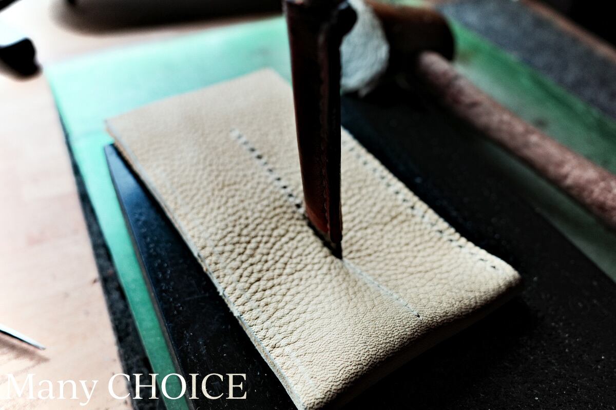 今回コバ面は、鹿の風合いを生かすため、切りっぱなしです。