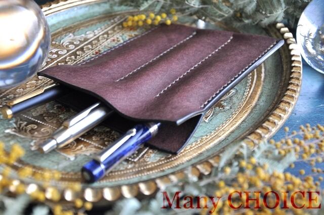 イタリアンレザー・革新のプエブロ・3本差しペンケース(ショコラ)