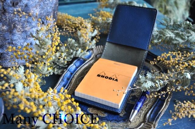 イタリアンオイルレザーアリゾナ・ロディアメモ帳ホルダー(アルノブルー)