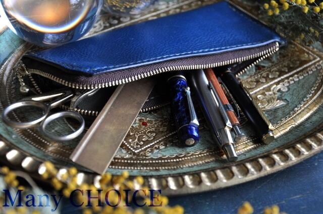 イタリアンオイルレザーアリゾナ・L型ペンケース(アルノブルー)