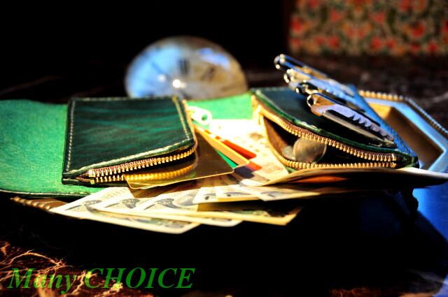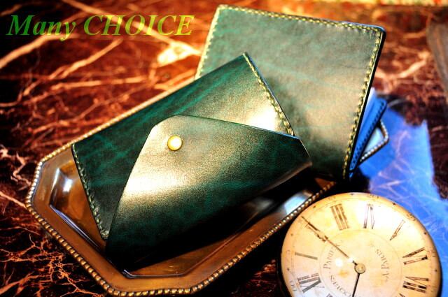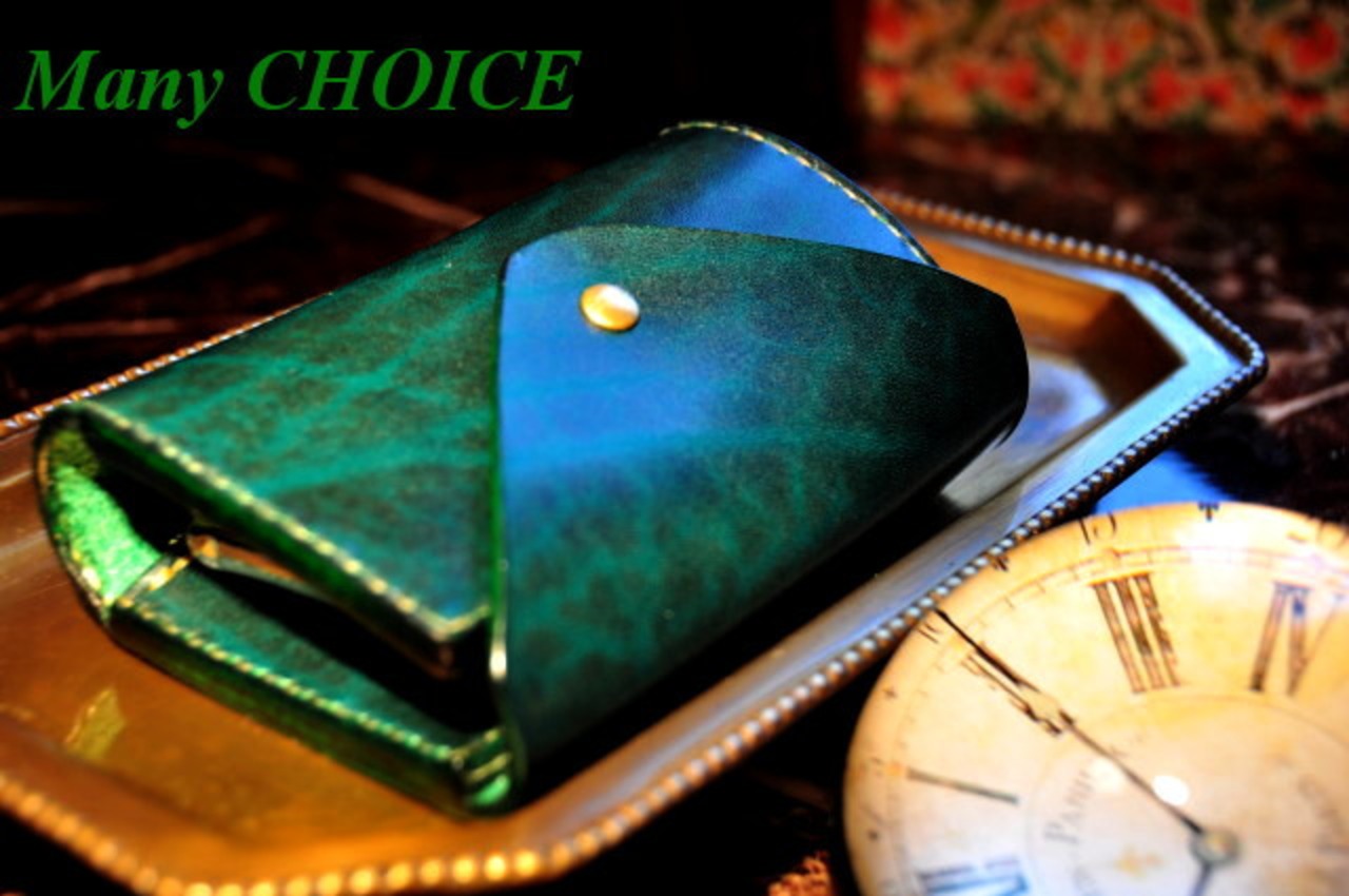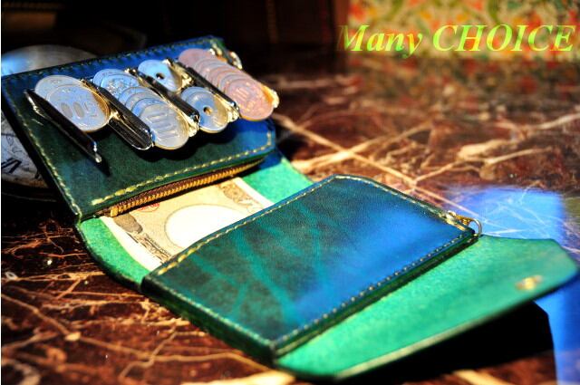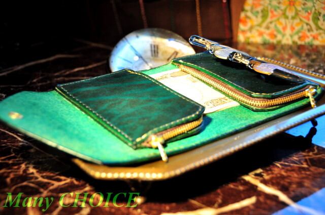 革の宝石ルガトー・二つ折りコインキャッチャー財布(緑)