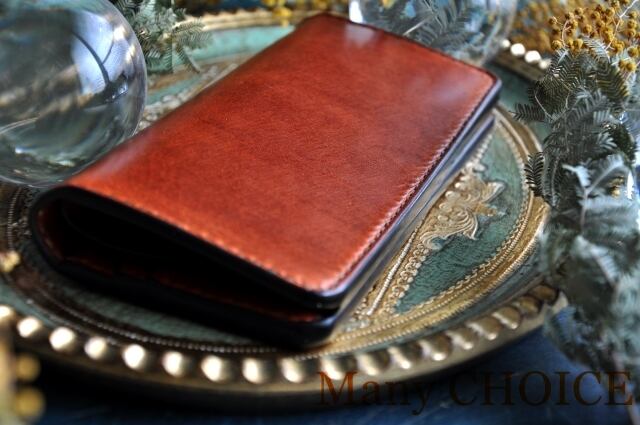 コバ面は磨き・焼きこみ・蠟引き、ワックスを繰り返し施し、時間をかけて、磨き上げていきます。コバにも、染色して、磨き上げています。
