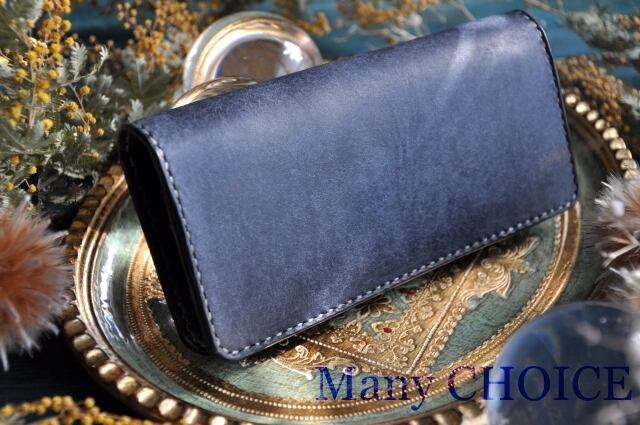 イタリアンレザー・革新のプエブロ・長財布(ネイビー)