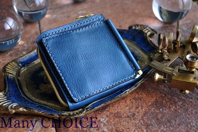 セミオーダーイタリアンオイルレザーアリゾナ・L型マネークリップ(アルノブルー)