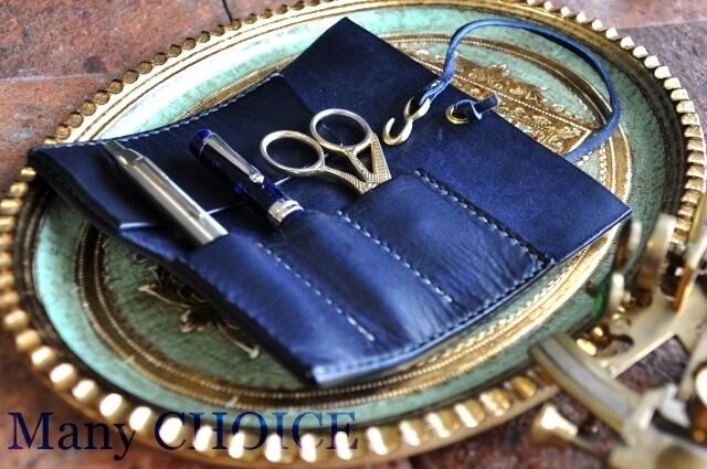 イタリアンバケッタ・エルバマット・ロールペンケース(紺)