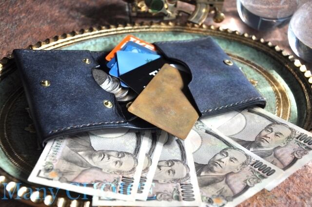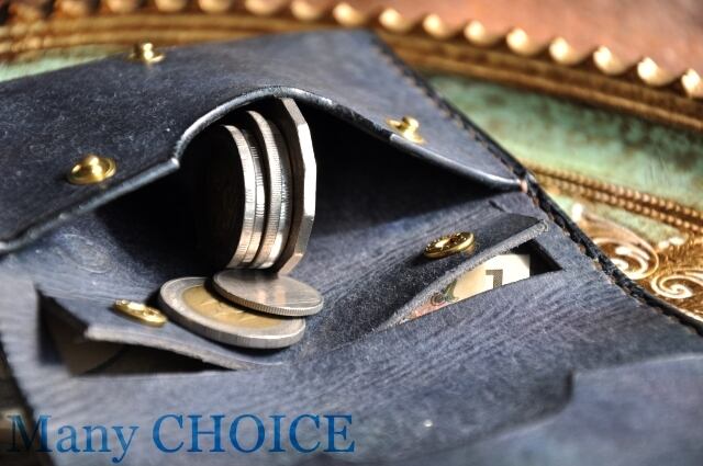 イタリアンレザー・革新のプエブロ・コンパクト2つ折り財布(ネイビー)