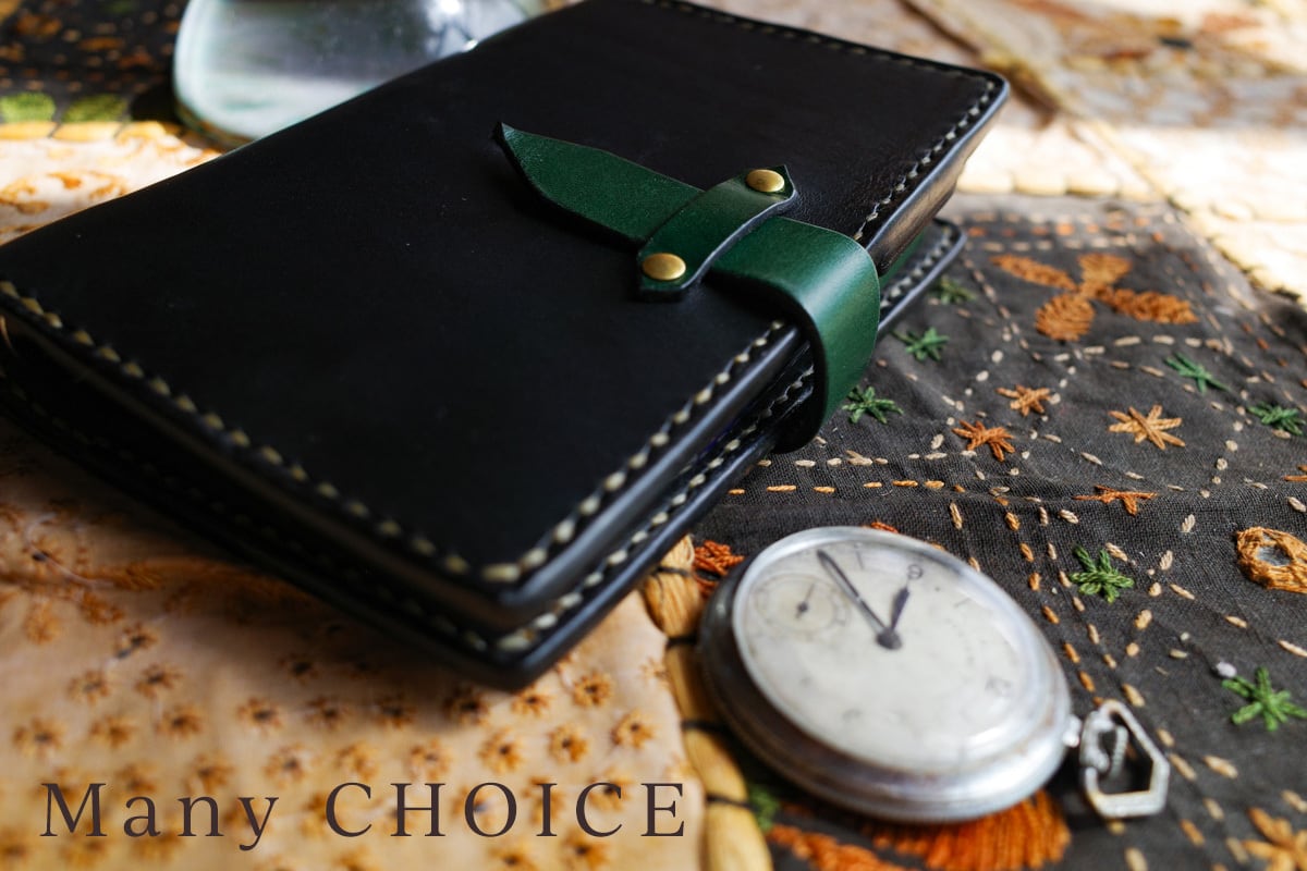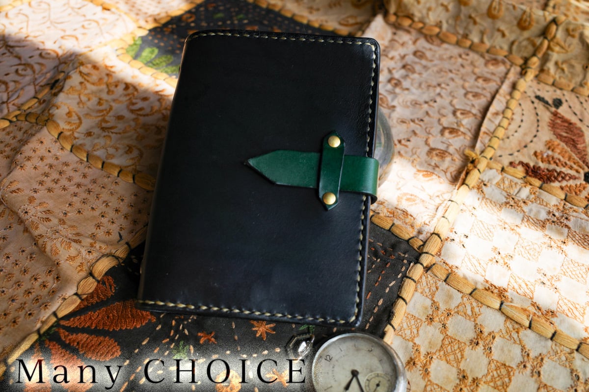ペンホルダーと帯部分はブッテーロの緑を使用しています。