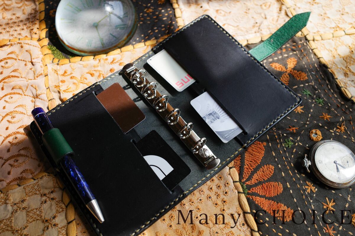 イタリアンオイルバケッタレザー×ブッテーロ・システム手帳(黒)