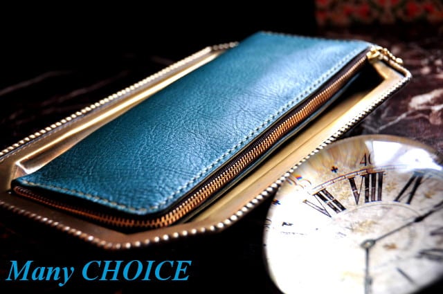 セミオーダー・イタリアンレザー・アリゾナL型長財布(ターコイズ)