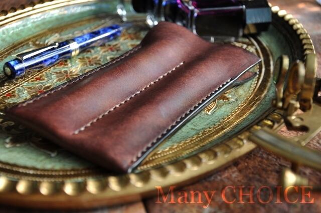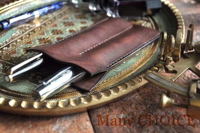 イタリアンレザー・革新のプエブロ・2本差しペンケース(ショコラ)