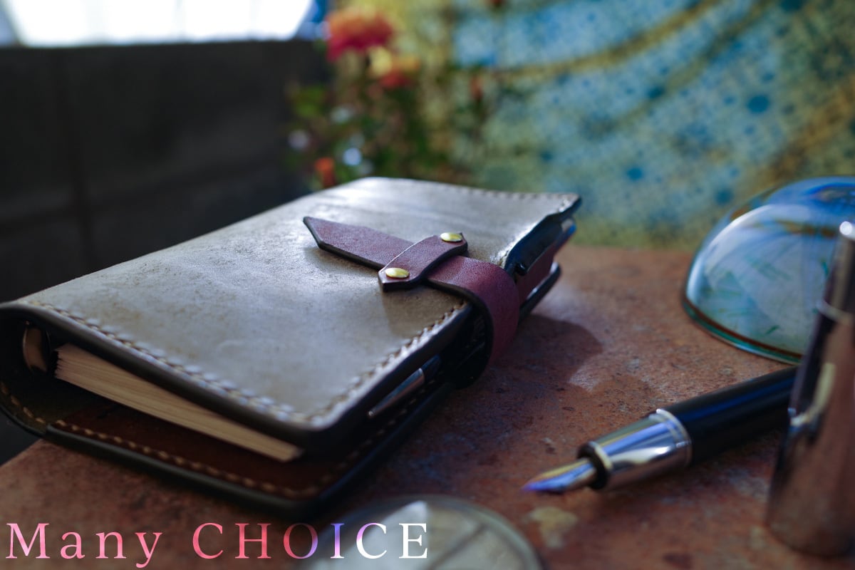 イタリアンレザー・革新のプエブロ・システム手帳(グリージオ×ショコラ×バイオレット)