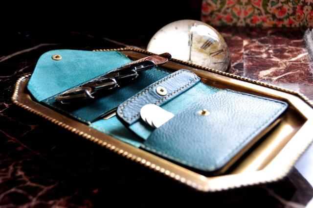イタリアンオイルレザーアリゾナ・コインキャッチャー財布(ターコイズ)