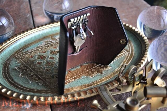 イタリアンレザー・革新のプエブロ・キーケース(ネイビー×ショコラ)