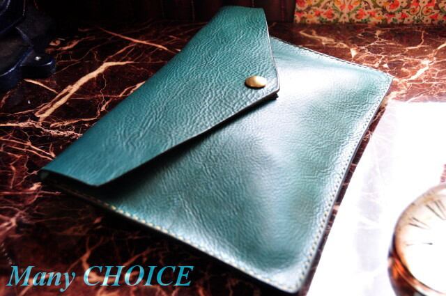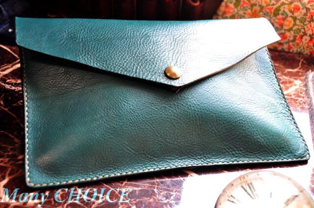 イタリアンオイルレザーアリゾナ・クラッチバック(ターコイズ)