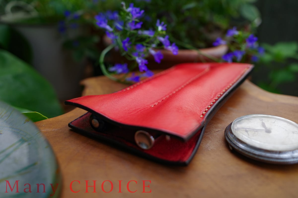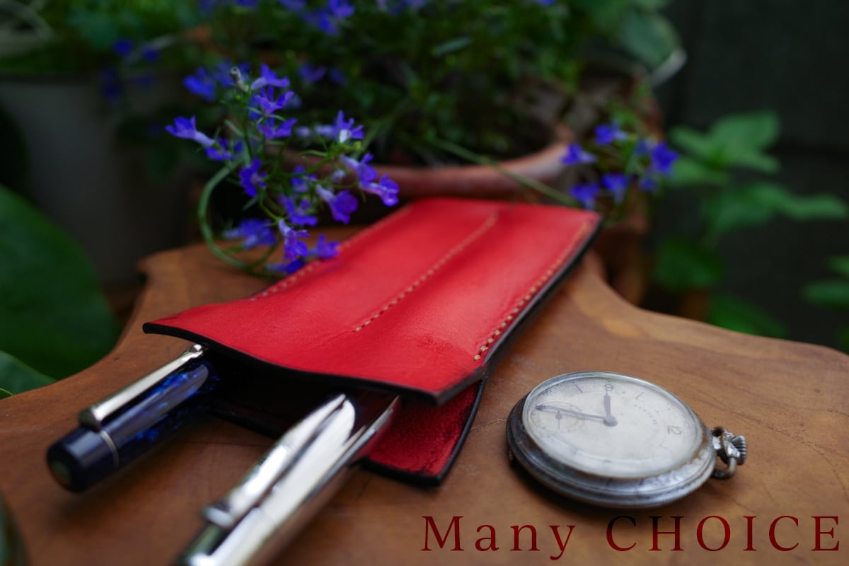 イタリアンオイルバケッタレザー・2本差しペンケース(レッド)