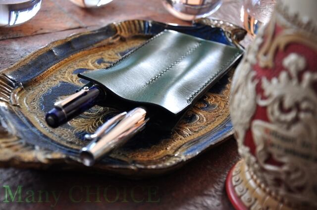 イタリアンレザー・帝王ブッテーロ・2本差しペンケース(グリーン)
