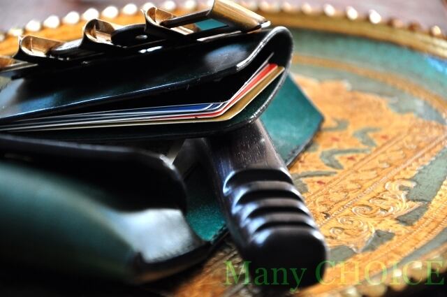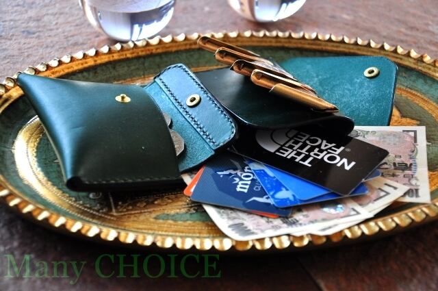 イタリアンレザー・帝王ブッテーロ・2つ折りコインキャッチャー財布(改)(グリーン)