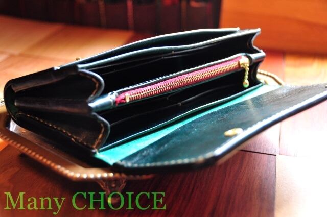 セミオーダー・ルガトー・長財布(緑×葡萄酒)