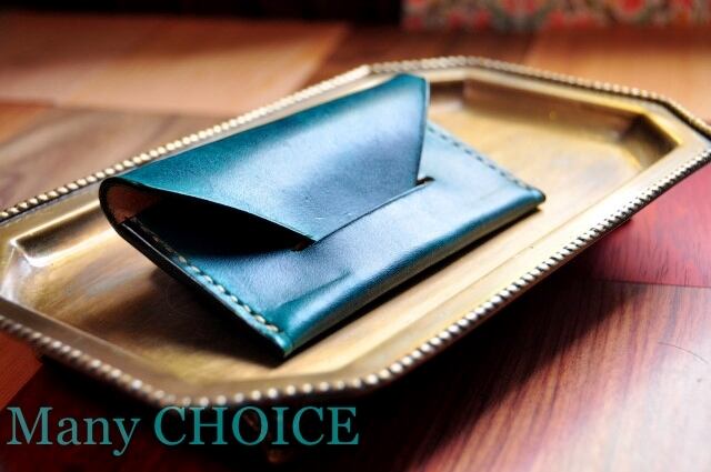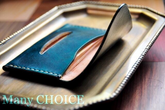 EUヌメ革 手染め名刺入れ(ブルーグリーン)