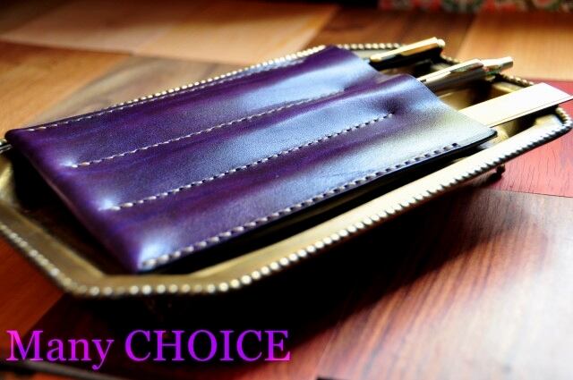 革の宝石・ルガトー・3本差ペンケース(紫)