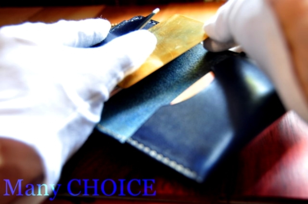 コバ面は磨き・焼きこみ・蠟引き、ワックスを繰り返し施し、時間をかけて、磨き上げていきます。