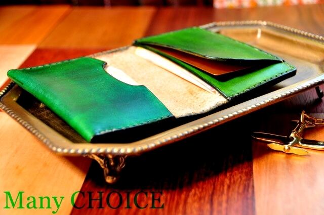 EUヌメ革・名刺入れ・手染め(ワサビグリーン)