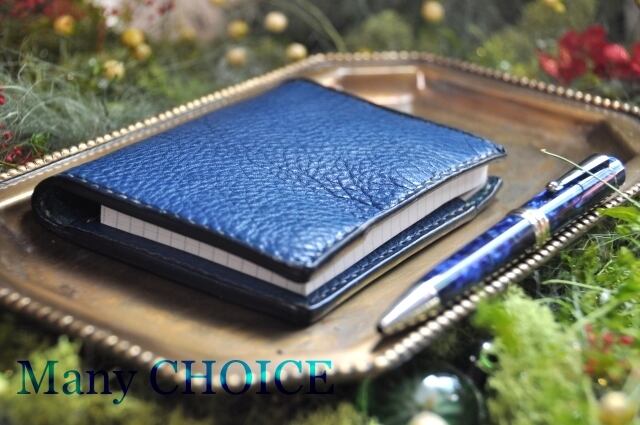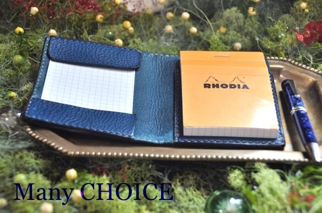 イタリアンオイルレザーアリゾナ・ロディアメモ帳カバーno11横(アルノブルー)