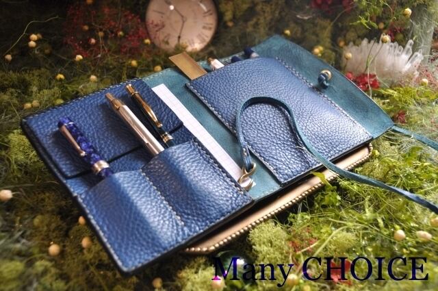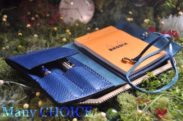 イタリアンオイルレザーアリゾナ・2つ折りロディア・ペンケース(アルノブルー)