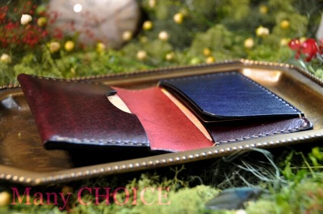 革の宝石ルガトー・名刺入れ(葡萄酒×紺)