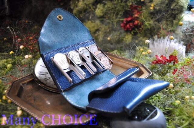 イタリアンオイルレザーアリゾナ・コインキャッチャー財布(改)(アルノブルー)