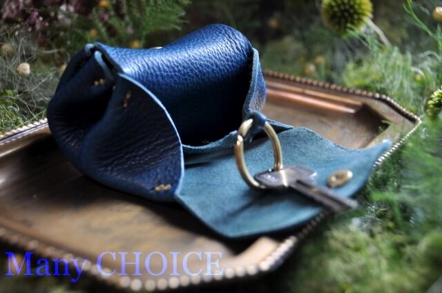 一つのポケットのところに鍵を入れられるように革紐と二重リングをつけて、キーケースと小銭入れを一体化しました。