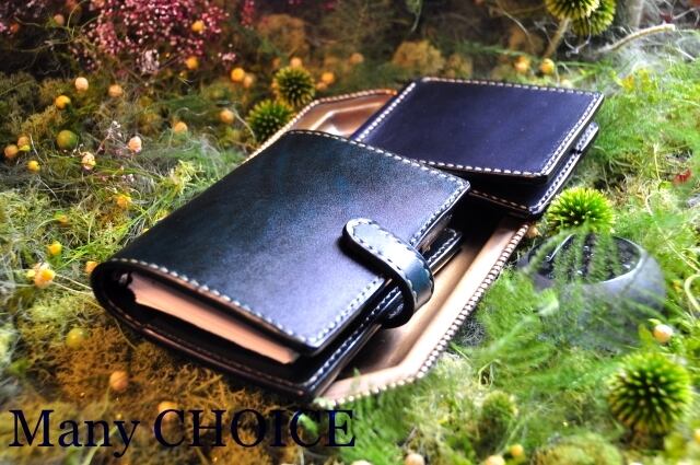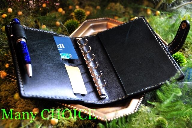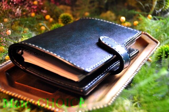 セミオーダー・革の宝石ルガトー・システム手帳(ホック式)(緑×黒)