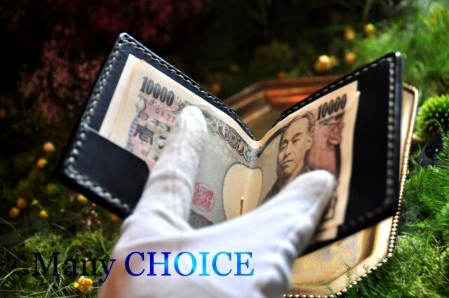 イタリアンレザー・帝王ブッテーロ・マネークリップ(紺)