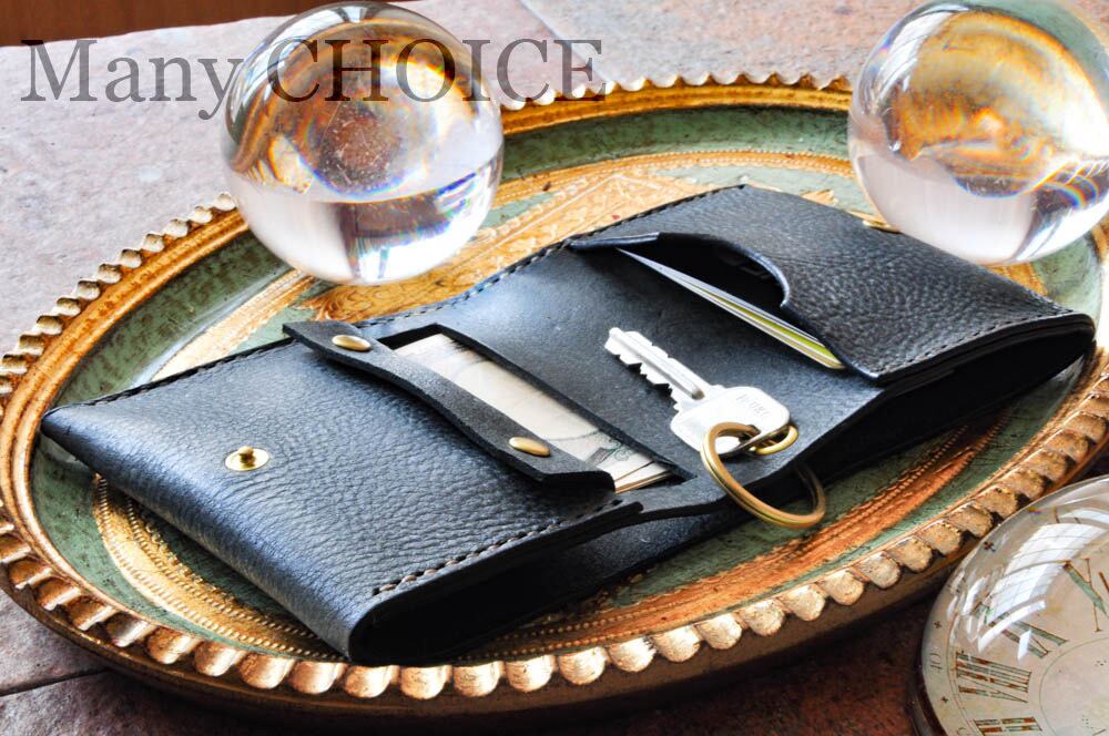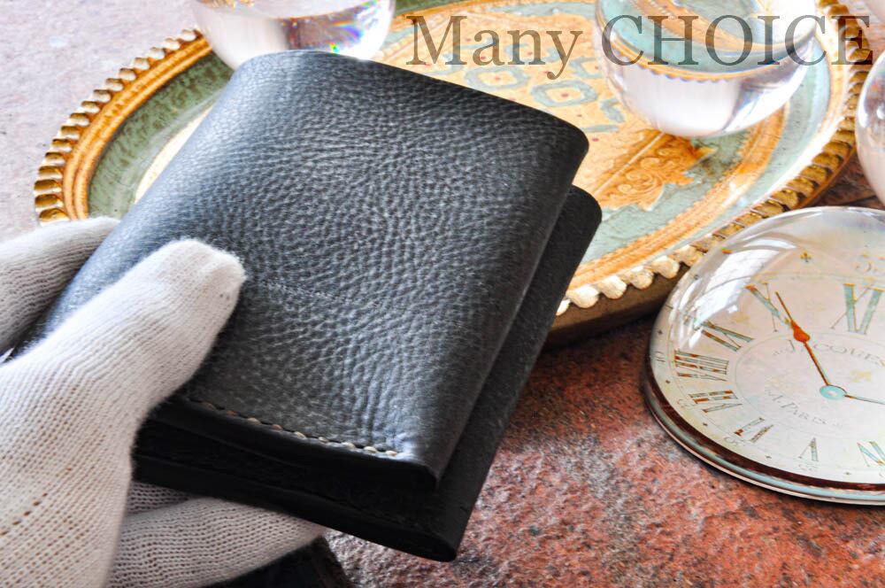 イタリアンバケッタレザー・アラスカ・コンパクト2つ折り財布(黒)