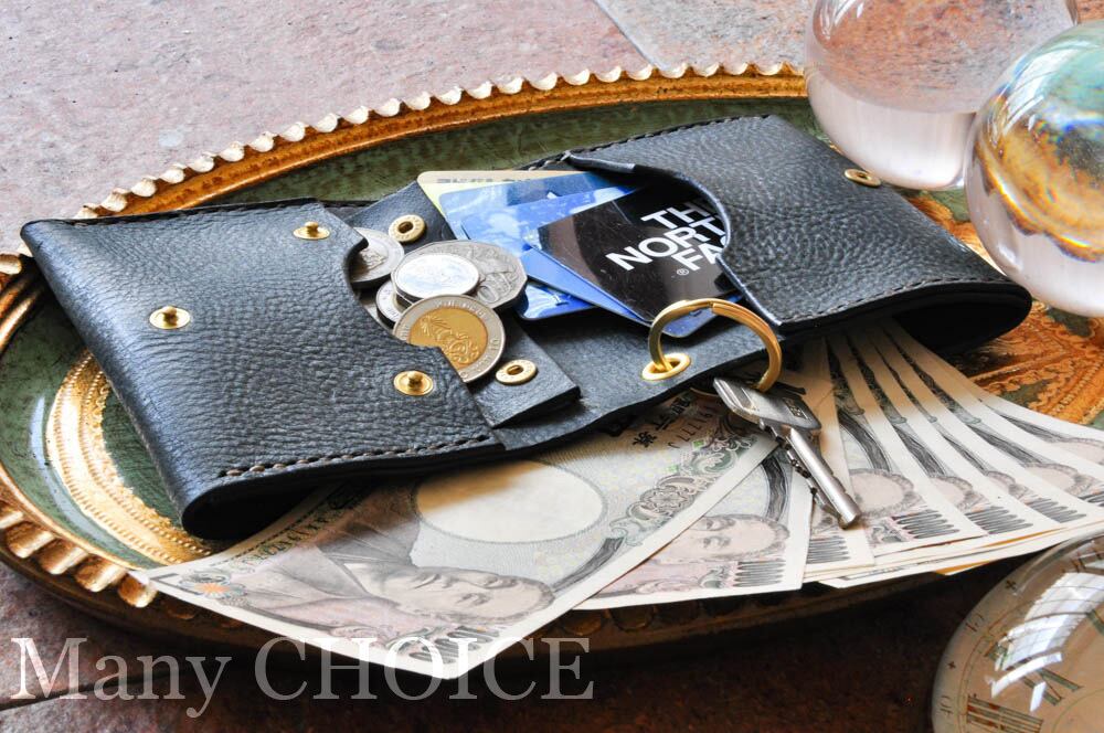 キーリングは、お札側にも、小銭側にも鍵を収納できる位置につけてあります。