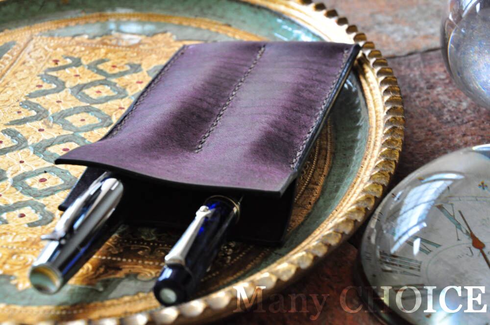 イタリアンレザー・革新のプエブロ・2本差しペンケース(バイオレット)