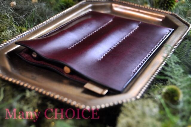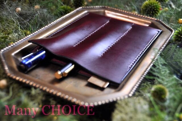 イタリアンレザー・帝王ブッテーロ・3本差ペンケース(葡萄酒)