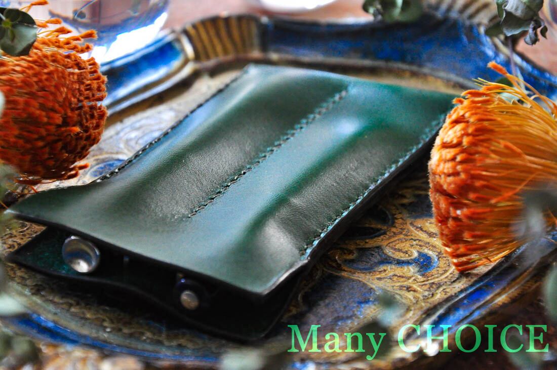 イタリアンレザー・帝王ブッテーロ・2本差しペンケース(グリーン)