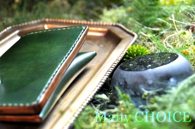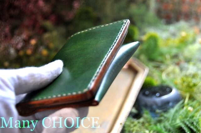 EUヌメ革・名刺入れ・手染め(ワサビグリーン)