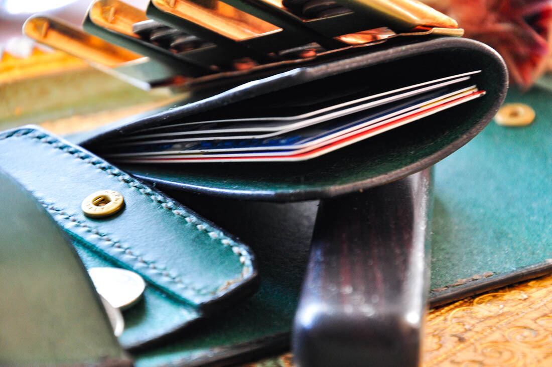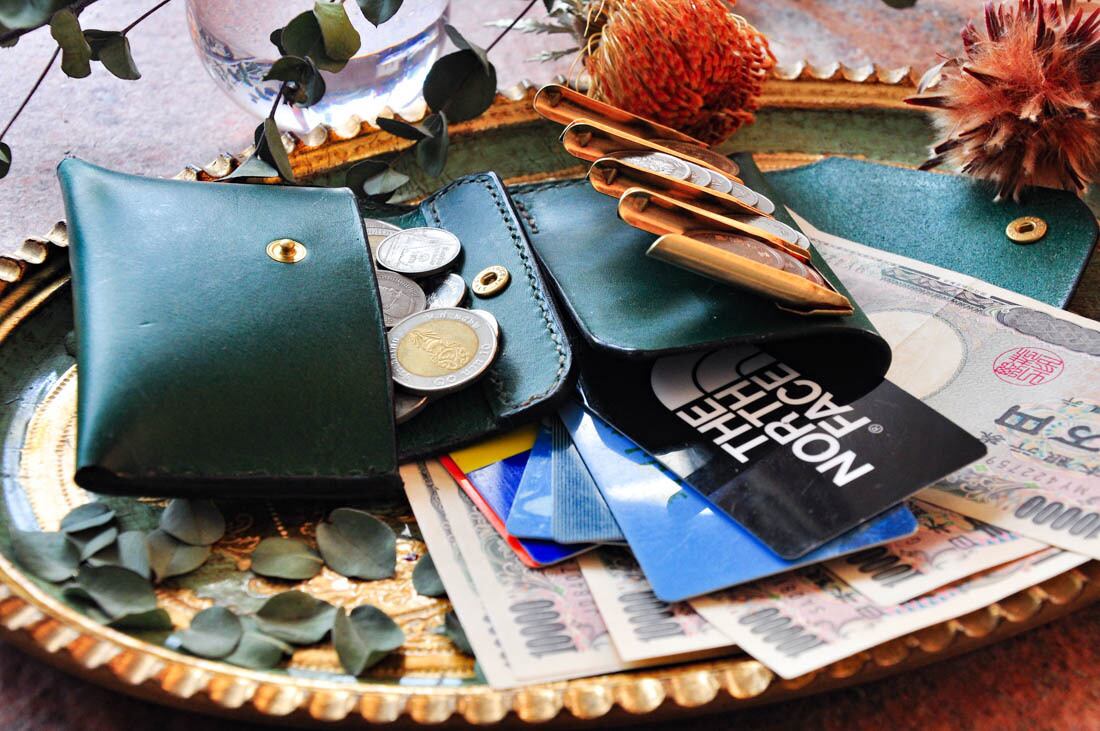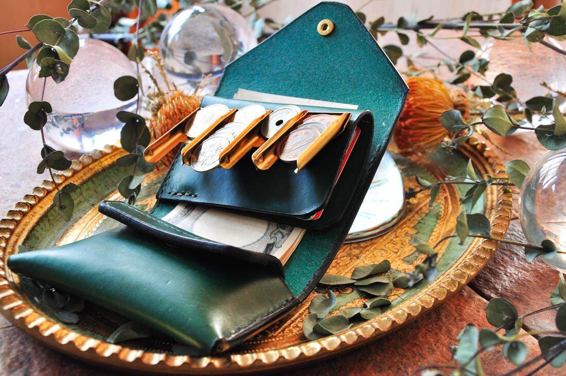 イタリアンレザー・帝王ブッテーロ・2つ折りコインキャッチャー財布(改)(グリーン)