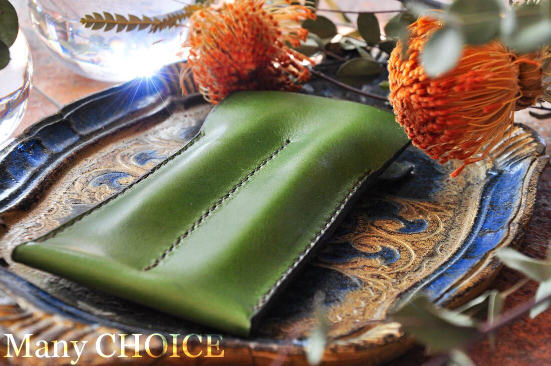 イタリアンバケッタ・エルバマット・2本差しペンケース(グリーンアップル)