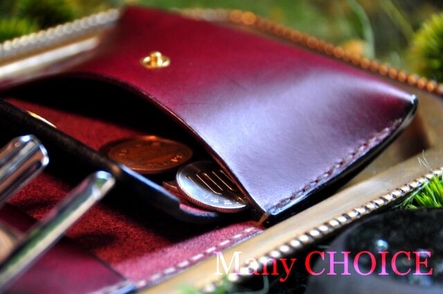 イタリアンレザー・帝王ブッテーロ・コインキャッチャー財布(改)(葡萄酒)