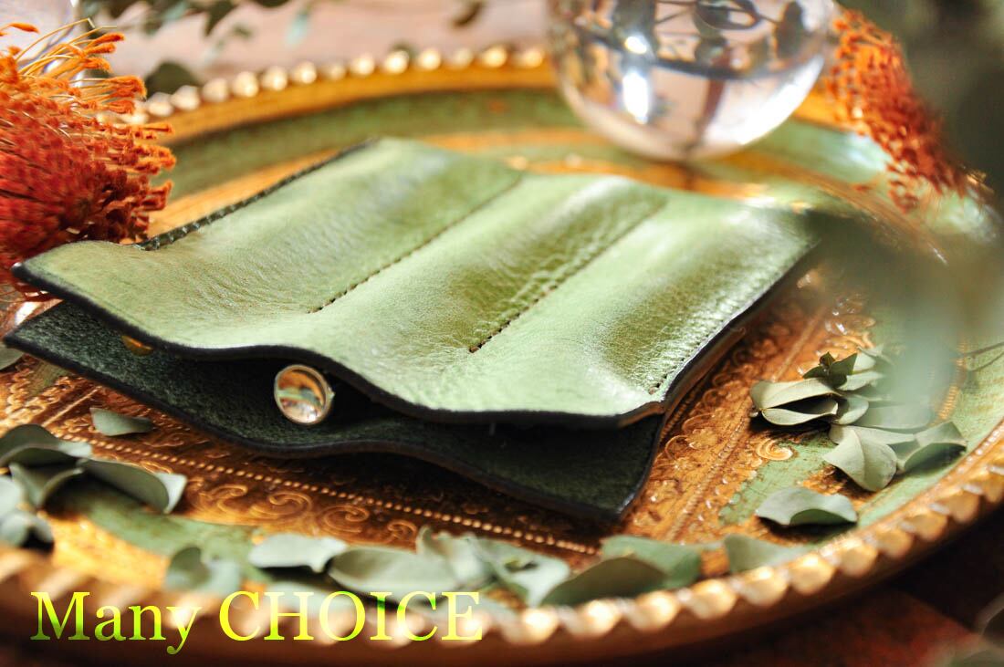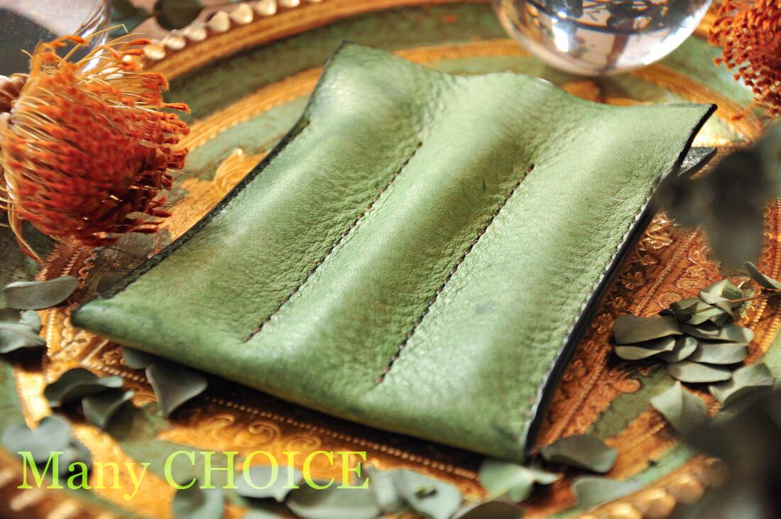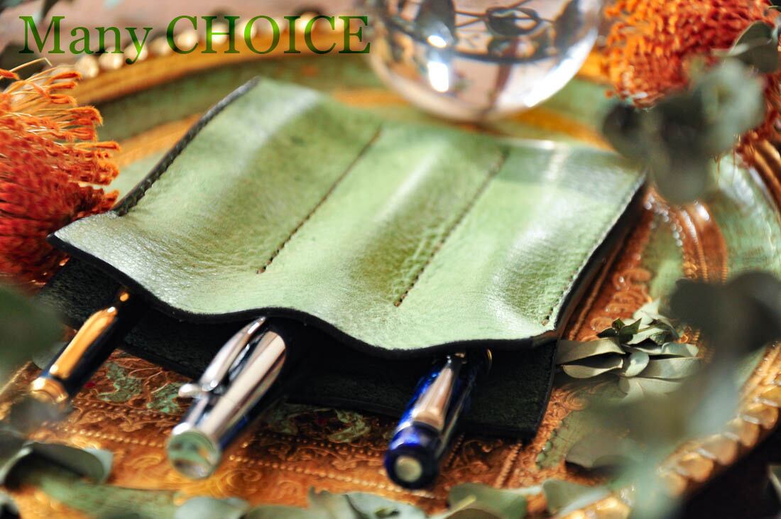 イタリアンバケッタレザー・アラスカ・3本差しペンケース(グリーン)