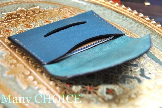 イタリアンオイルレザーアリゾナ・名刺入れ(ターコイズ)