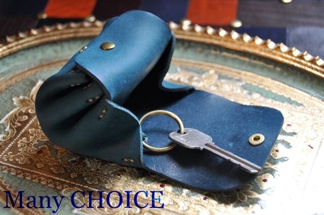 一つのポケットのところに鍵を入れられるように革紐と二重リングをつけて、キーケースと小銭入れを一体化しました。