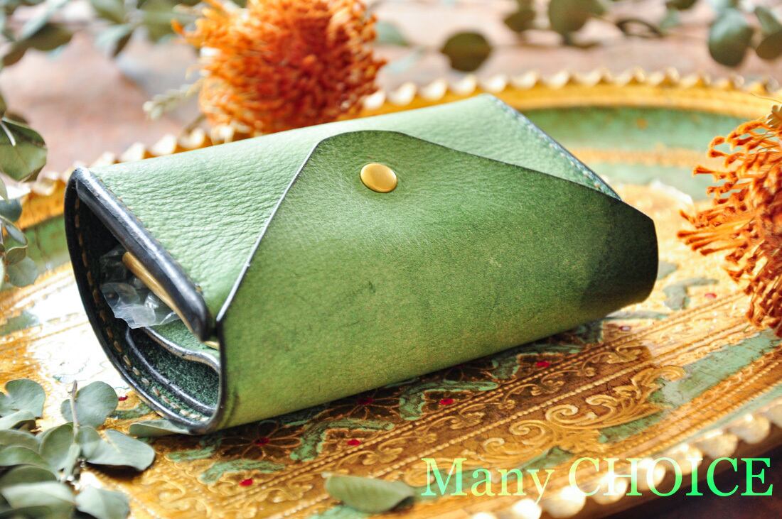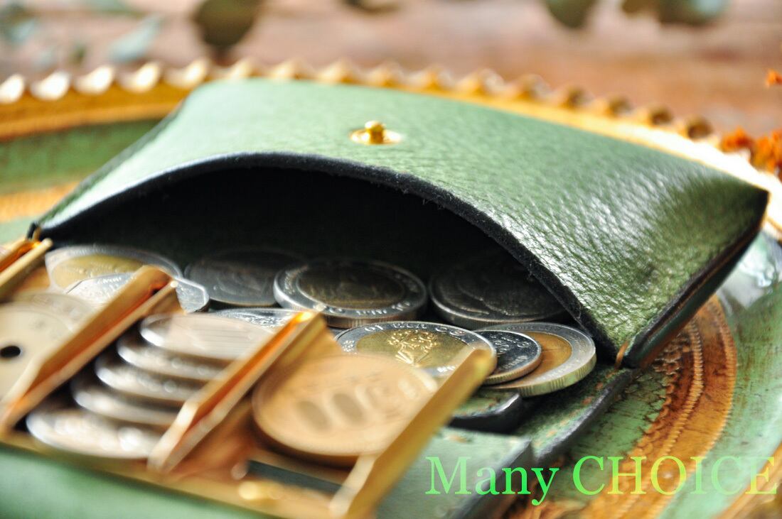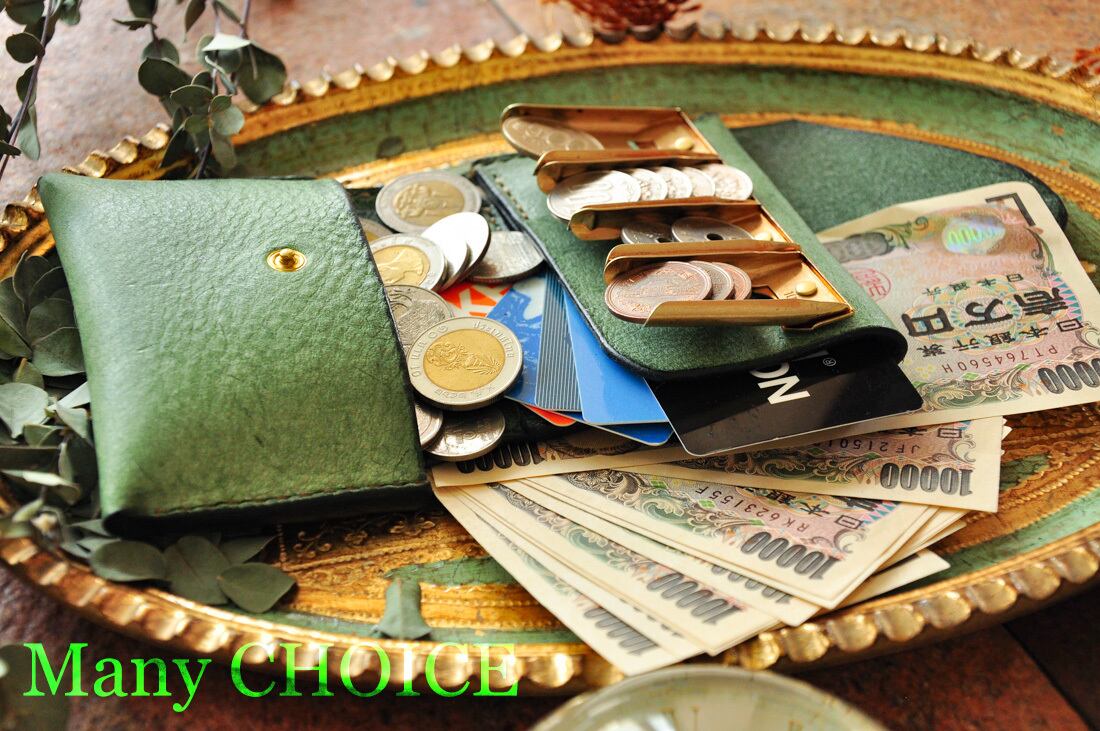 イタリアンバケッタレザー・アラスカ・2つ折りコインキャッチャー財布(改)(グリーン)