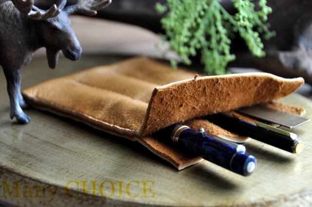 「限定2個」やみつきエルクの3本差ペンケース(黄茶)