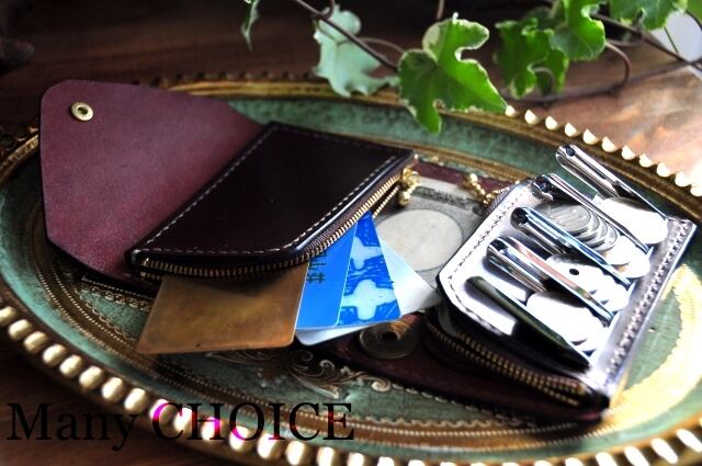 セミオーダー・革の宝石ルガトー・2つ折りコインキャッチャー財布(葡萄酒)